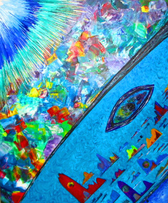 Our utopia, our beautiful planet, our home. Although Man is polluting it with untold toxins, the theme is positive and promotes hope as our awareness, and perhaps our very survival, will eventually prompt us to respect our living planet. We will once again live in peaceful and harmonious existence with nature.